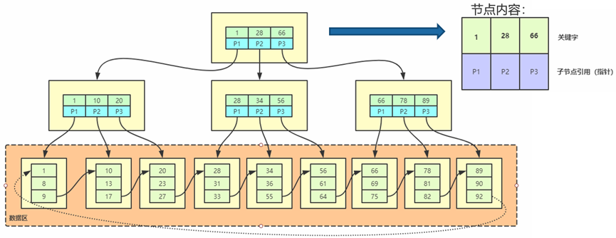 而B+树的话,数据只存在叶子节点上,同时相邻的叶子节点有链表的结构
