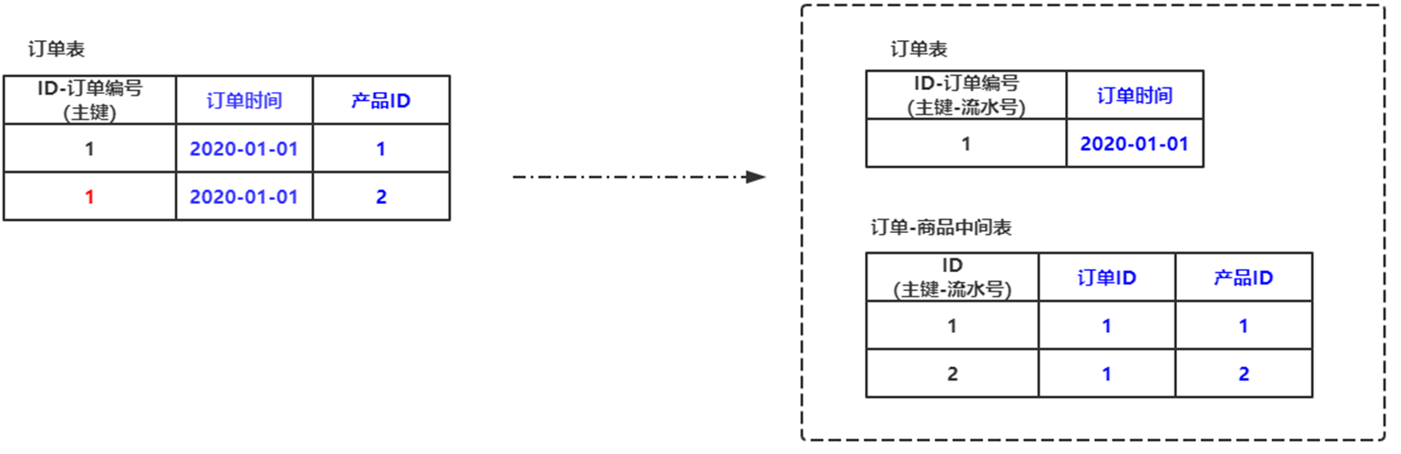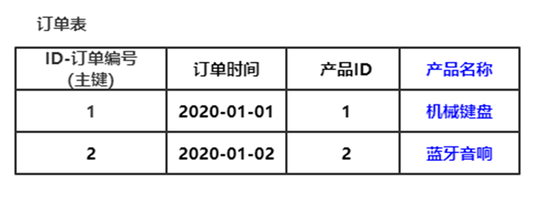 这里如果产品ID或产品名称变化会发生什么情况?所以以上不符合第三范式(3NF)