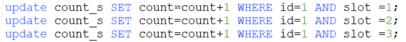 怎么改进呢?可以将计数器保存在多行中,每次随机选择一行进行更新。在具体实现上,可以增加一个槽(slot)字段,然后预先在这张表增加100行或者更多数据,当对计数器更新时,选择一个随机的槽(slot)进行更新即可。