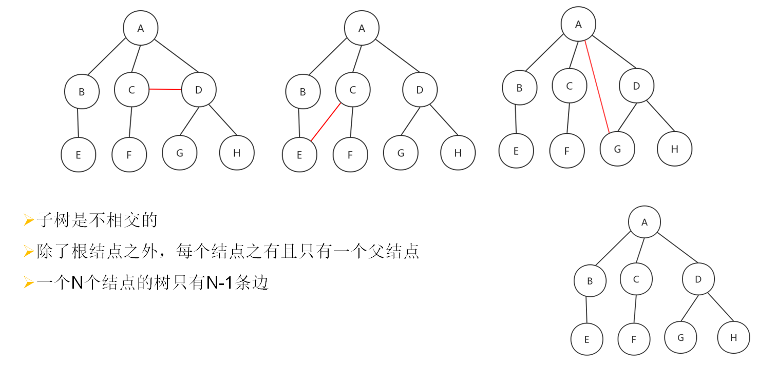 - 其余结点可分为M个互不相交的树,称为原来结点的”子树”