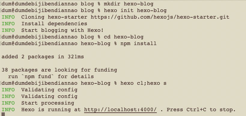 创建一个文件夹hexo-blog,执行以下命令,Hexo将会在该文件夹下初始化相关文件