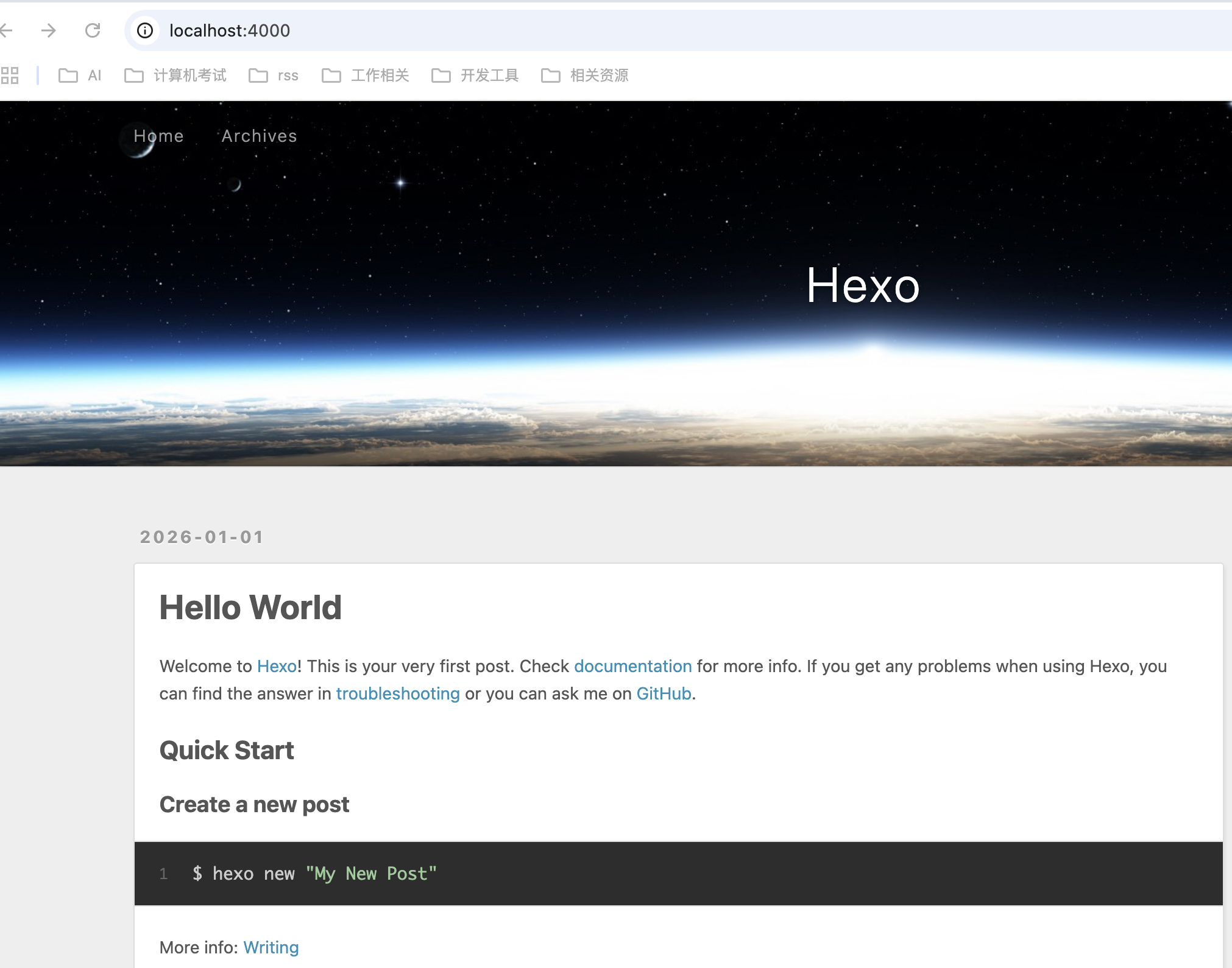 hexo cl;hexo s查看本地页面是否符合预期 http://localhost:4000/