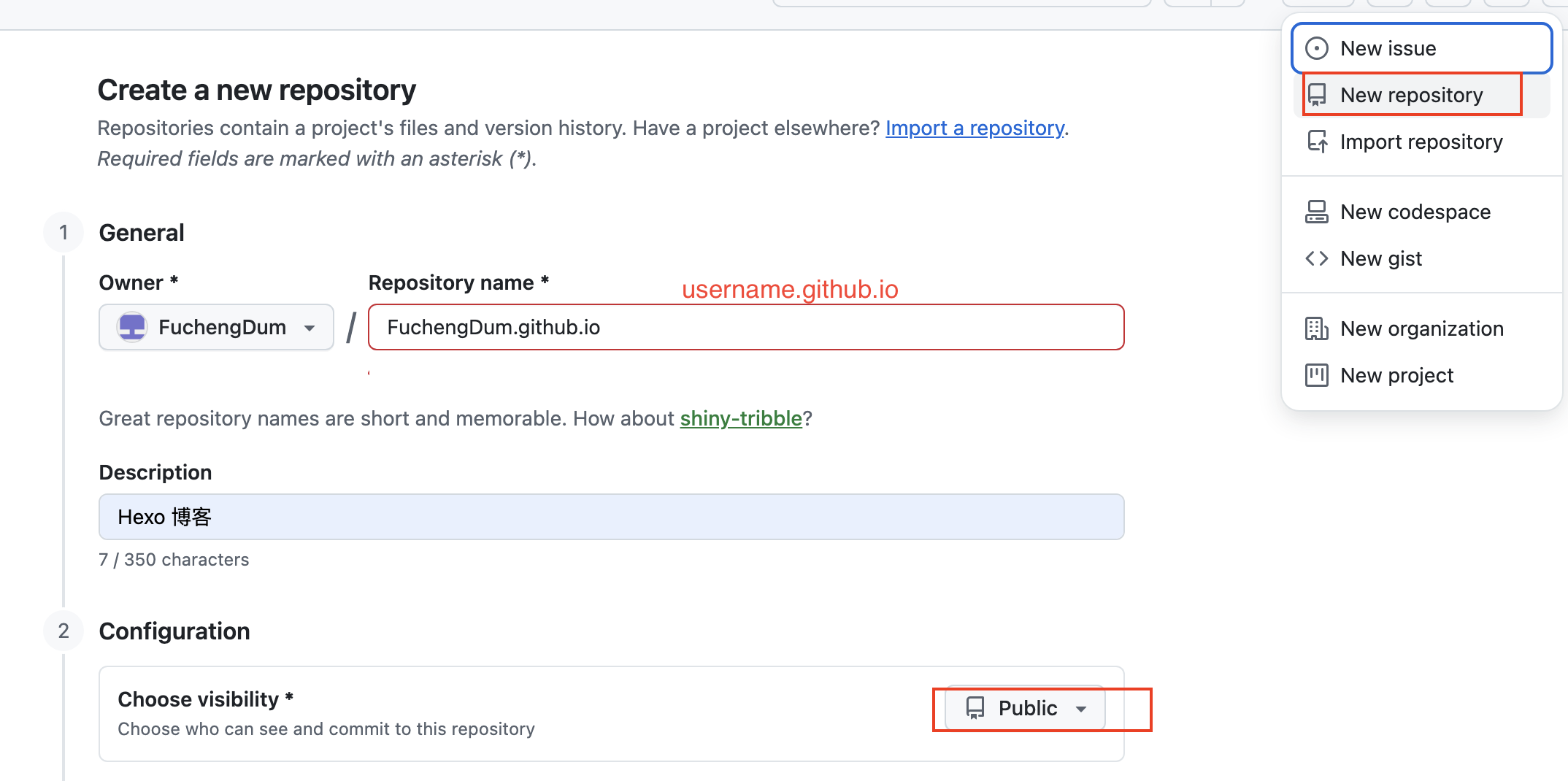 GitHub创建一个远程仓库,主要仓库命名必须为用户名.github.io。