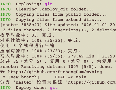 确认无误之后,执行以下命令推送到GitHub仓库,推送过后,GitHub Pages以及Cloudflare Pages会自动拉取新的仓库版本进行发布