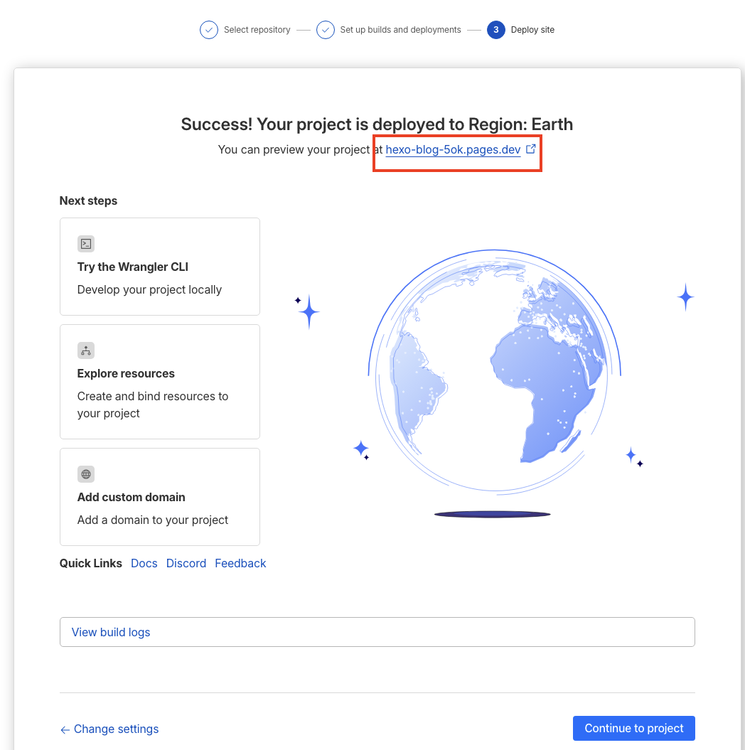 部署成功后,并可通过分配的域名访问博客绑定域名(可选)